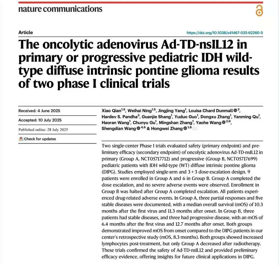 在科研领域,他带领团队开展的胶质瘤免疫治疗研究取得突破性进展,采用溶瘤病毒技术的临床成果已两次发表于国际顶级期刊《Nature Communications》。这些科研成果有望持续转化为临床能力,未来可能会让更多的患者同步受益于前沿治疗技术。
